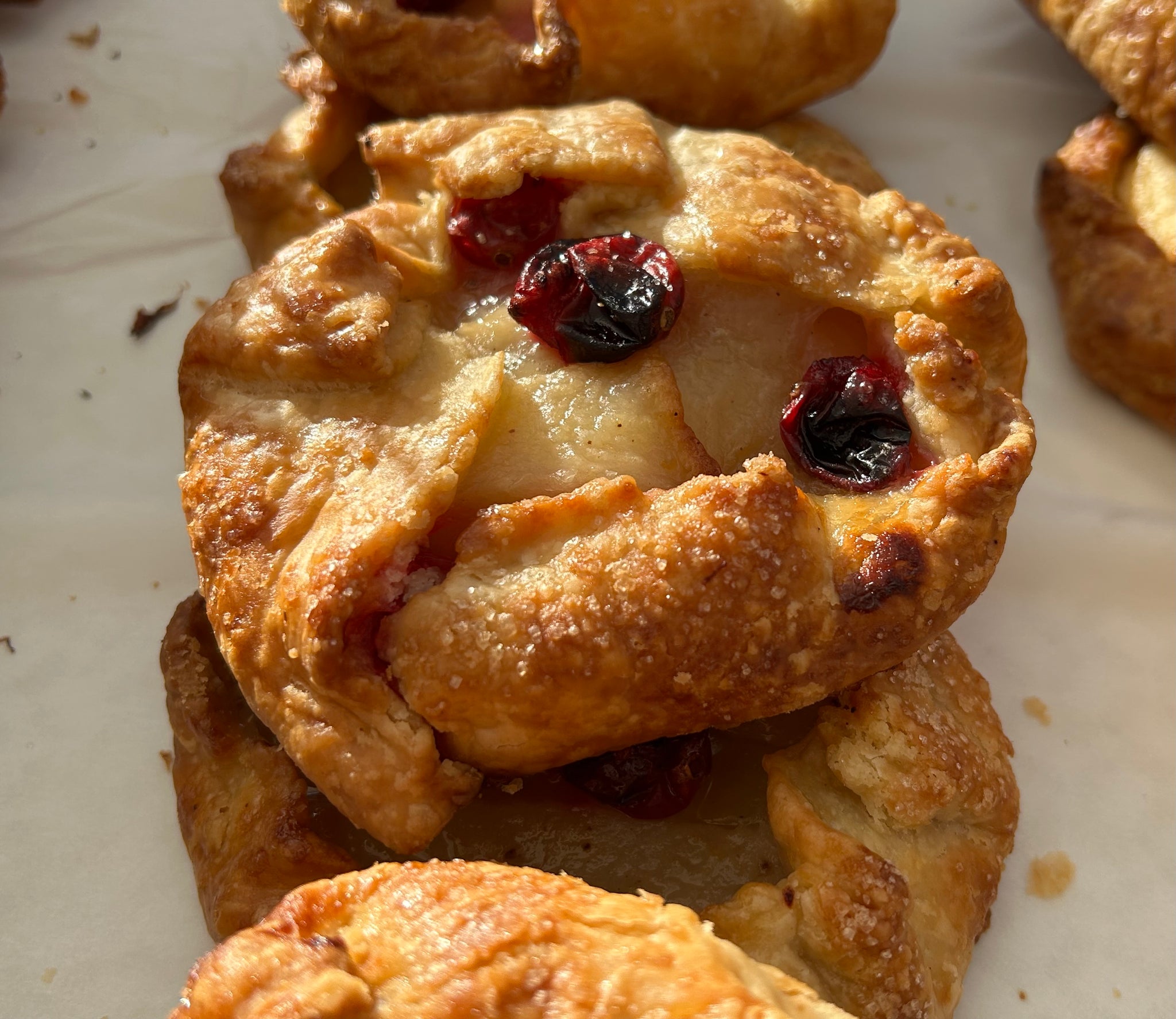 We have to admit that our galettes are pretty popular. Our customers tell us that they enjoy the seasonal fruit galettes for both breakfast and after dinner. Flavors vary by week. Great heated with ice or whipped cream.