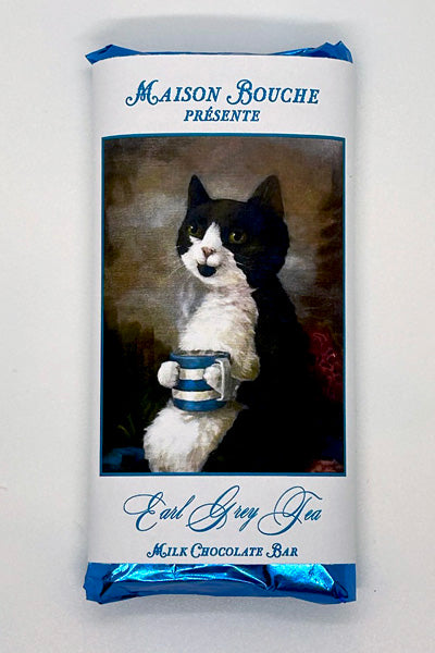 Milk Chocolate Bar: Ingredients – milk chocolate (cane sugar, cream, cocoa butter, cacao beans, sunflower lecithin, vanilla beans), Earl Grey tea flavor