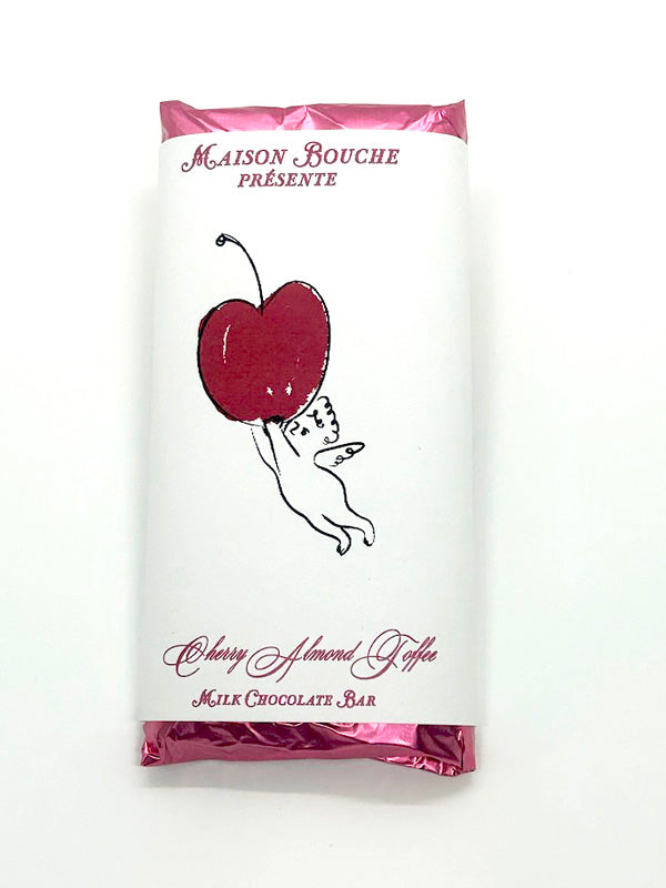 Cherry chocolate made crunchy with almond toffee. You'll swoon! Bar weigh approximately 2.2 oz. Available in milk or dark chocolate.